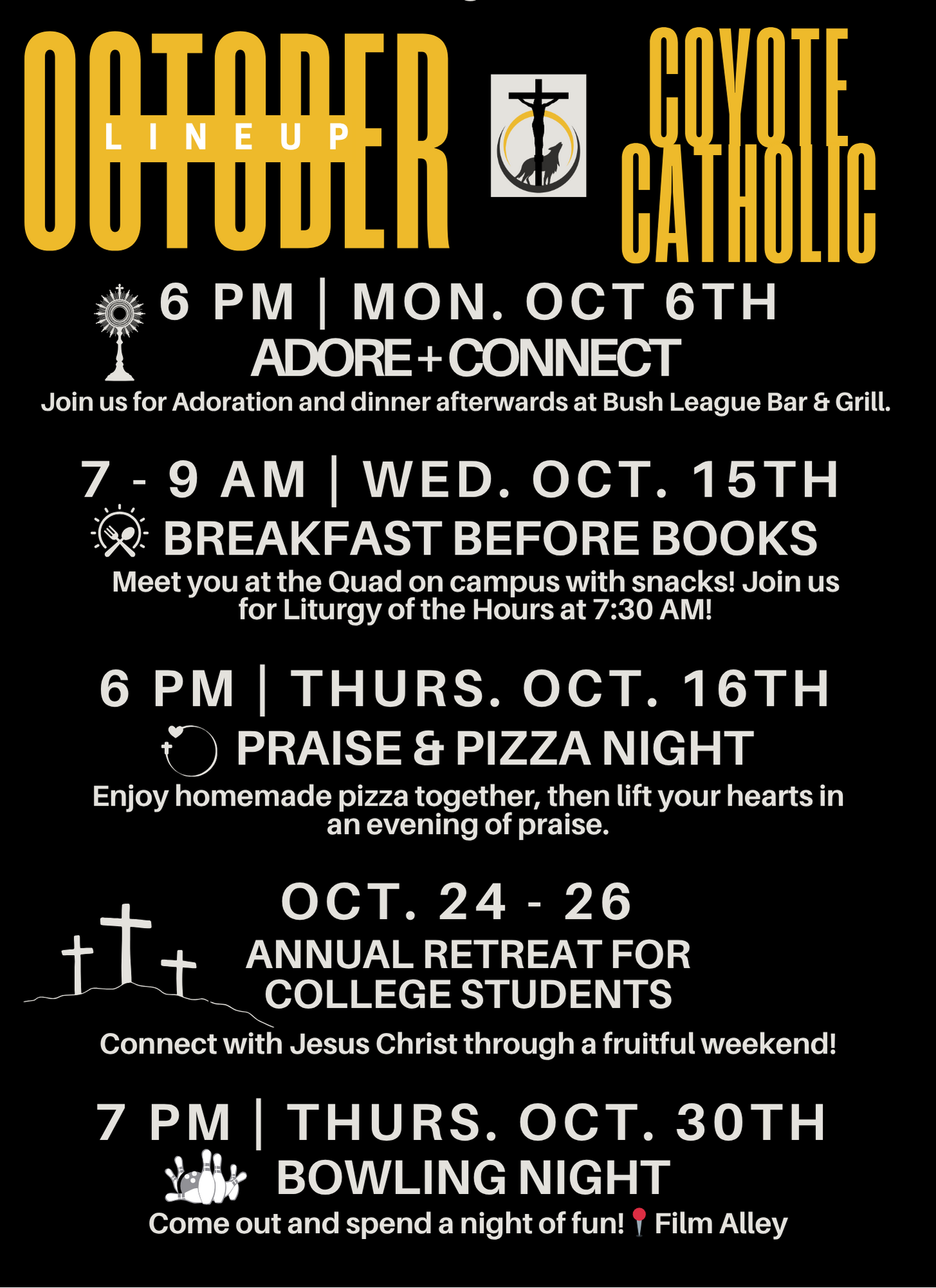 We are an organization of St. Stephen Catholic Church that serves students at Weatherford College to grow as a disciple of Jesus focusing on the teachings of the Catholic Church.
