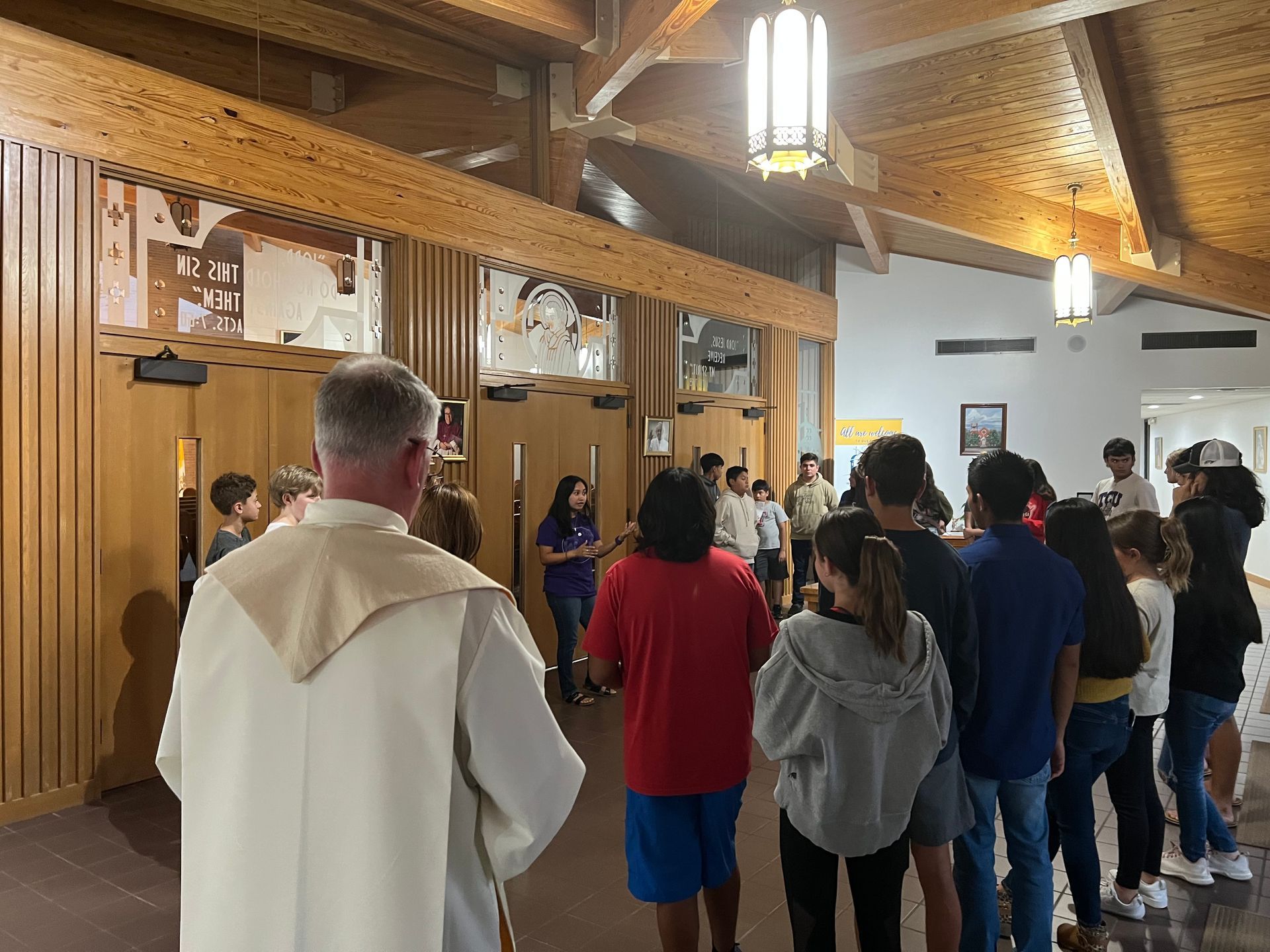 The Way Youth Group seeks to catechize and evangelize following the teachings of the Catholic Church. We desire to foster the love of God and cultivate disciples of Jesus Christ through faith, fellowship, and fun. With the guidance of the Holy Spirit, we aspire to serve our parish, our community, and the world by walking beside young people through their faith journeys.